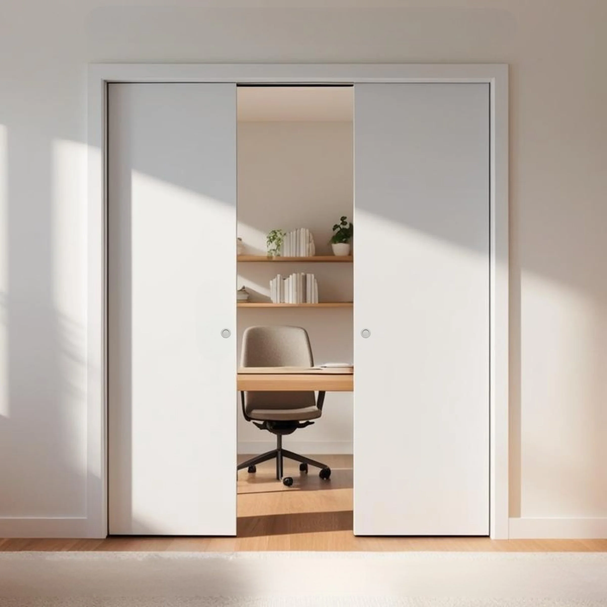 So that’s it, everything you need to make a door of your choice into a pocket door. You need only supply the door, plasterboard and any wood linings you choose.