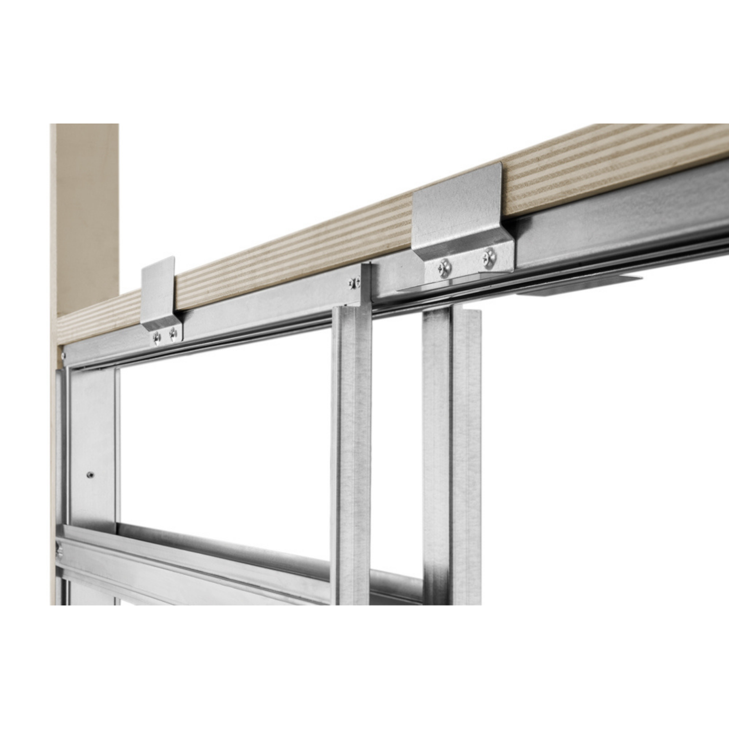 - Door brackets to attach the door to the runners, these have the possibility to adjust up to 7mm so your door can be at the perfect height (remember to always install your frame at finished floor level)